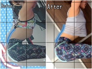 同じレギンスなのですが、腰のあたりにある縫い目を基準に、お尻のラインを確認すると、すこしだけ骨盤が前に傾いているようにも見えます。腰から背中のラインも、丸さはやや解消されました。