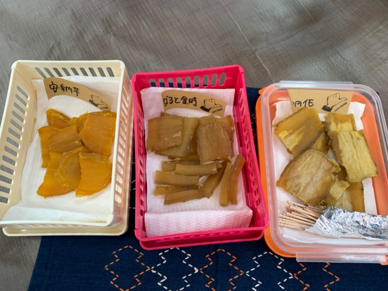 先週日曜日 栗東秋祭りに行って来ました。 1期生のみなさんがとても✨イキイキ✨とされていて 笑顔の絶えない楽しい????レッスンでした⤴️ 久しぶりに青空の下☀️デニムのままの参加でしたがそれでも心地よくて体の伸びを感じました。 ありがとうございます???? 同期とワイワイ楽しく干し芋????の話になり、作るのは意外と簡単だと知りました。 早速作って見る事に???? 1、蒸し器で1時間ほど弱火で蒸す。 2、薄くカットし天日干しする。 以上 簡単です✌️ 干し芋の表面についてる白い粉は中の糖分が出て結晶化したものが表面に浮き出て来るんですよ。 冬に作ると甘くて美味しくなります。 今日はRYT土曜日クラス。 みんなに毒味⁉️してもらおうと持って来ました。 鳴門金時に安納芋に100円の...